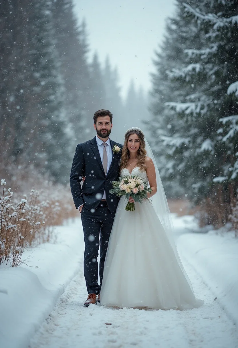 Keep your bridal party warm and stylish with attire suitable for winter weather. Brides may opt for long-sleeved gowns in luxurious fabrics like velvet or satin. Bridesmaids can be adorned in shawls or faux fur wraps, while groomsmen can don wool suits or velvet blazers. This not only ensures comfort but also adds a touch of sophistication and seasonal charm to your wedding photos.