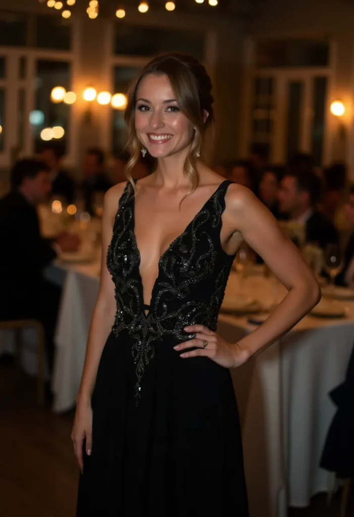 For a touch of sparkle, choose a glamorous black bridesmaid dress with sequin accents. This stunning design features intricate sequin detailing that catches the light beautifully, making it perfect for evening weddings. The fitted bodice and flowing skirt create a striking silhouette, while the sequins add a festive flair. Your bridesmaids will love the opportunity to shine on your special day, making this dress a fabulous choice for a glamorous wedding celebration.