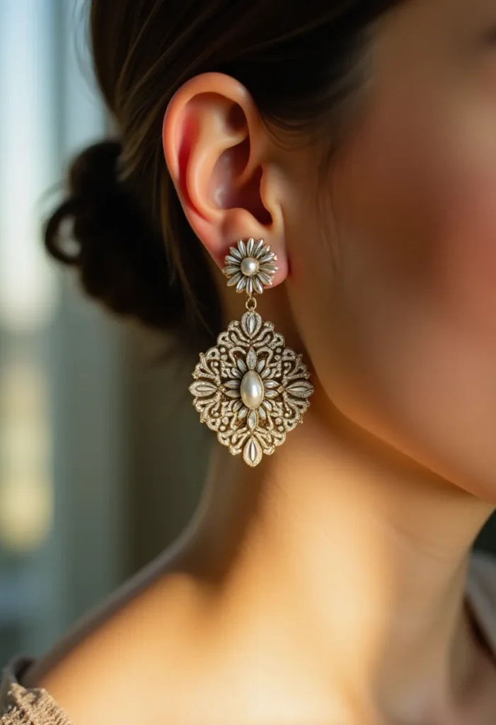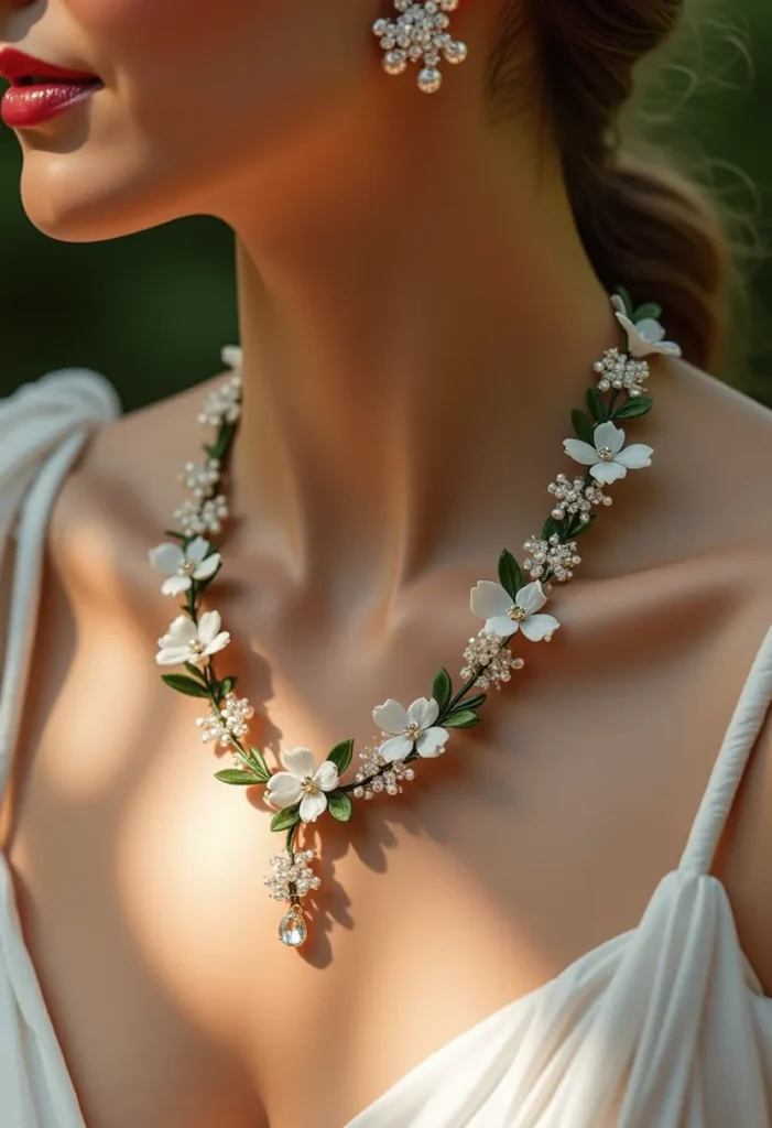 Bring the beauty of nature to your wedding day with floral-inspired jewelry. These enchanting pieces often feature intricate flower motifs, leaves, and even botanical elements that capture the essence of romance. Perfect for garden weddings or nature-themed celebrations, floral jewelry can add a whimsical touch to your bridal ensemble. Whether it's a delicate flower crown, dainty earrings, or a statement necklace adorned with blossoms, these pieces can beautifully complement your theme. Floral jewelry is not only charming but also symbolizes love and growth, making it a meaningful choice for your special day.