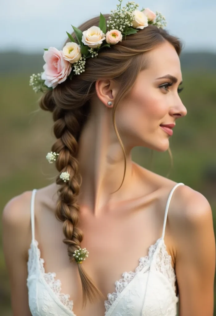 For brides who adore a free-spirited look, bohemian braids are the way to go. This style can range from a simple braid to intricate designs that weave in floral elements or ribbons. Braids can be styled in a crown, cascading down, or even as accents in your loose waves. They add texture and interest to your overall appearance while keeping your hair secure. Bohemian braids are perfect for outdoor or garden weddings, lending a whimsical feel to your bridal look.