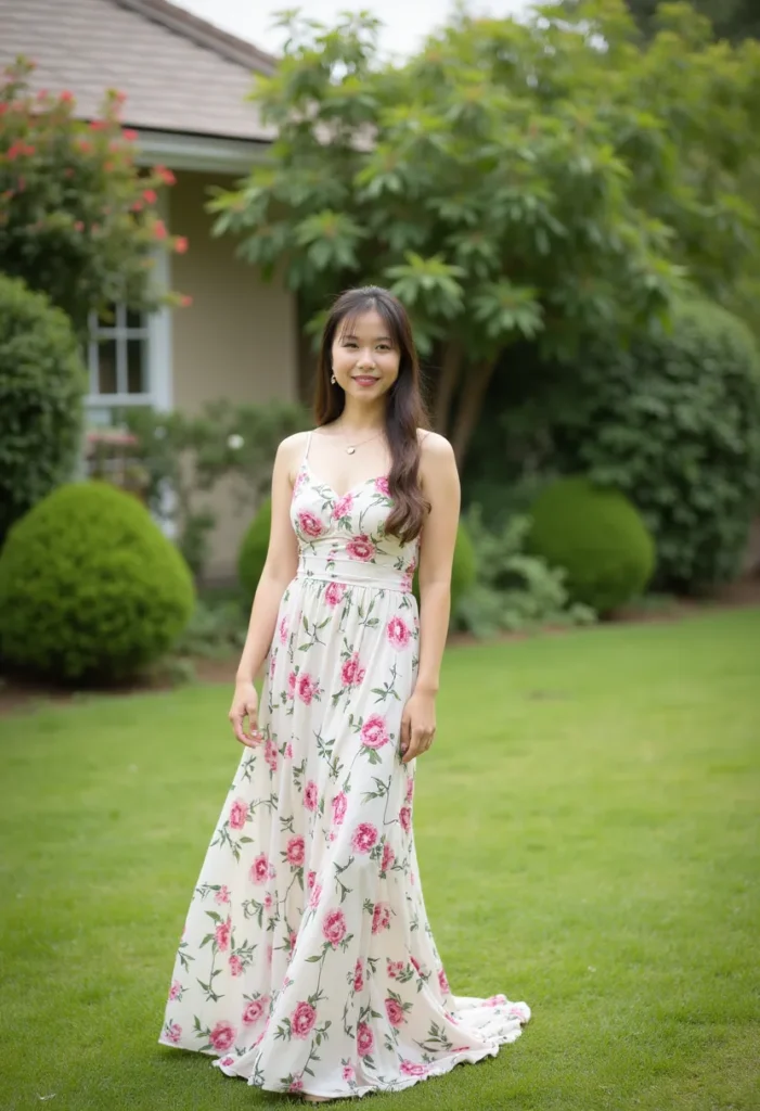 Embrace the beauty of spring with a floral maxi dress that flows gracefully with every step. This dress features a vibrant print of blooming flowers set against a soft pastel background, perfect for a romantic outdoor wedding. The lightweight fabric ensures comfort while the flattering silhouette cinches at the waist, enhancing your figure. Pair it with strappy sandals and delicate jewelry for a chic look. This dress is not just a fashion statement; it's a celebration of nature's beauty, making it an ideal choice for a spring wedding.