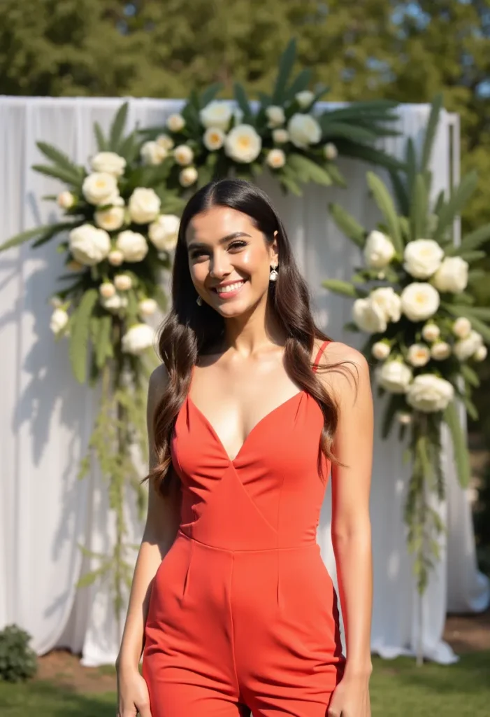 Dare to be different with a stylish jumpsuit that combines comfort and elegance. A tailored jumpsuit in a bright spring hue or a floral pattern can stand out in a sea of dresses. Look for one with a cinched waist and wide legs for a flattering silhouette. Dress it up with statement jewelry and heels to complete the look. This modern alternative is perfect for the fashion-forward guest who wants to make a statement while enjoying the wedding celebrations.