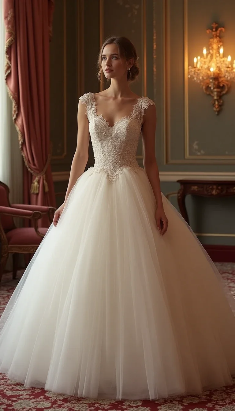 The classic ball gown is a quintessential representation of old money elegance. Characterized by a fitted bodice and a voluminous skirt, this style is perfect for brides who wish to make a grand entrance. The fullness of the skirt often utilizes layers of tulle or organza, creating a dramatic and ethereal effect. Historically, ball gowns have been the choice of royalty and the elite, symbolizing wealth and sophistication. When paired with delicate lace or beaded embellishments, a ball gown becomes a timeless masterpiece, ideal for a traditional wedding setting.