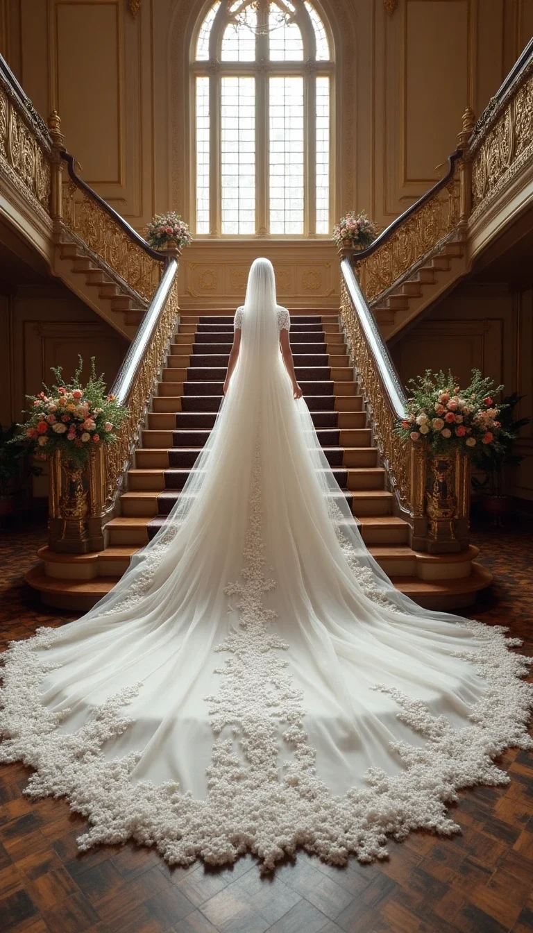 A wedding dress with a train adds an element of drama and sophistication, perfectly suited for an old money wedding. Whether it’s a chapel, cathedral, or royal train, the length and style can transform a simple gown into a statement piece. Historically, longer trains were a sign of wealth and status, as they required additional fabric and craftsmanship. Today, a train remains a popular choice for brides seeking to add a regal touch to their ensemble. This feature is particularly striking in formal ceremonies, where the train can cascade beautifully down the aisle.