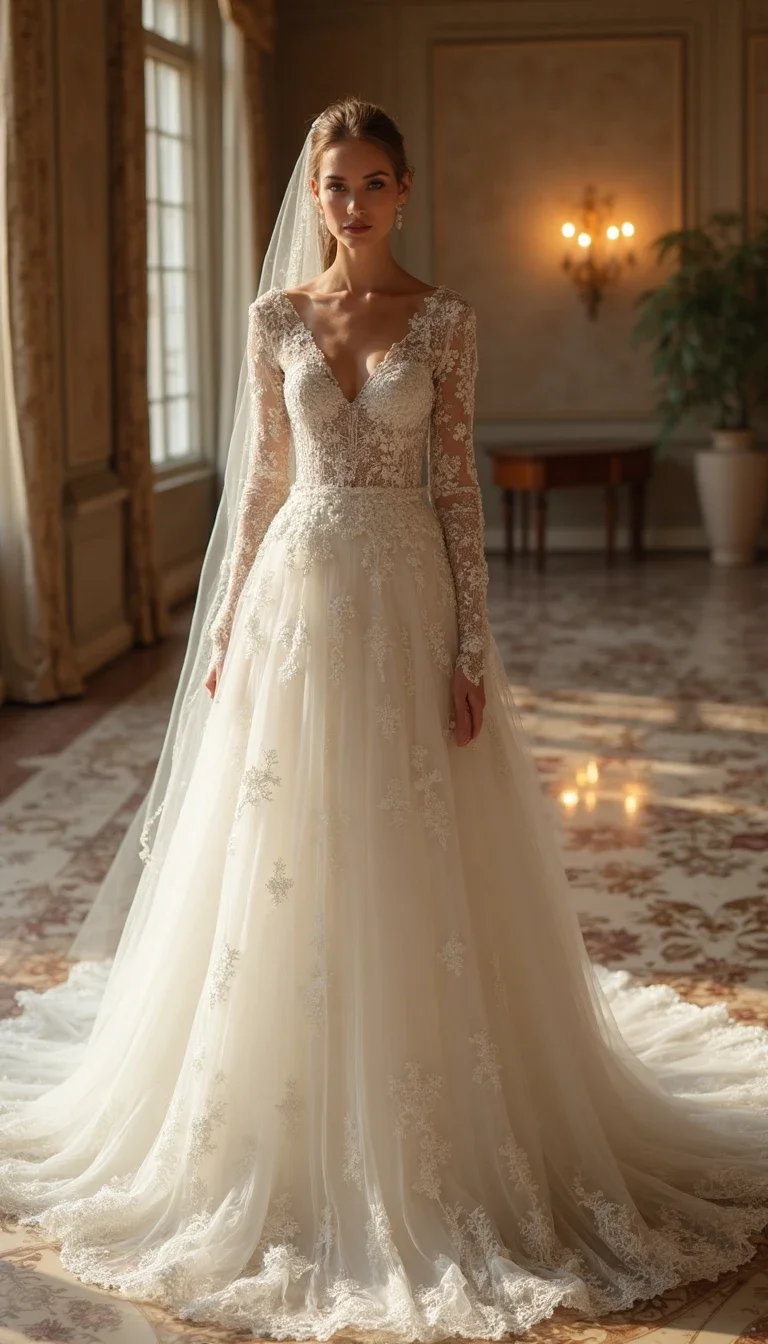 Long-sleeved wedding dresses are the epitome of sophistication and have been a favorite among royalty and celebrities alike. This style offers a sense of modesty while still being incredibly chic. Long sleeves can be crafted from various materials such as lace, silk, or sheer fabrics, each lending a unique texture and feel. The allure of long-sleeved gowns lies in their ability to elongate the arms and create a streamlined silhouette. Perfect for cooler seasons or formal venues, these dresses capture the essence of old money elegance.