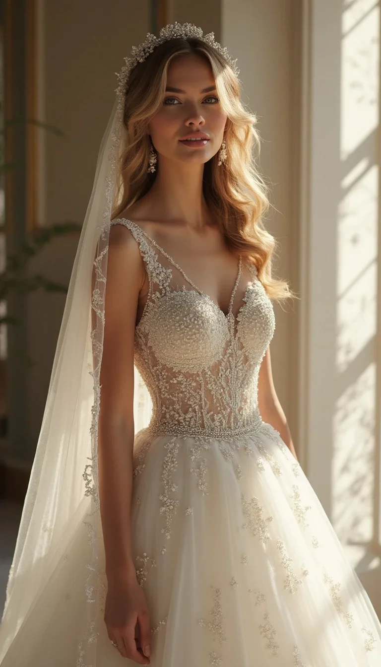 Pearls and beads have been used for centuries to embellish bridal gowns, adding a touch of opulence and glamour. These embellishments can be subtly integrated into the gown’s design or lavishly applied for a more dramatic effect. Pearls are particularly associated with old money weddings, symbolizing purity and elegance. When combined with beads, they create a textured and luminous surface that catches the light beautifully. Whether adorning the bodice, sleeves, or hem, these embellishments enhance the gown’s sophistication and charm.