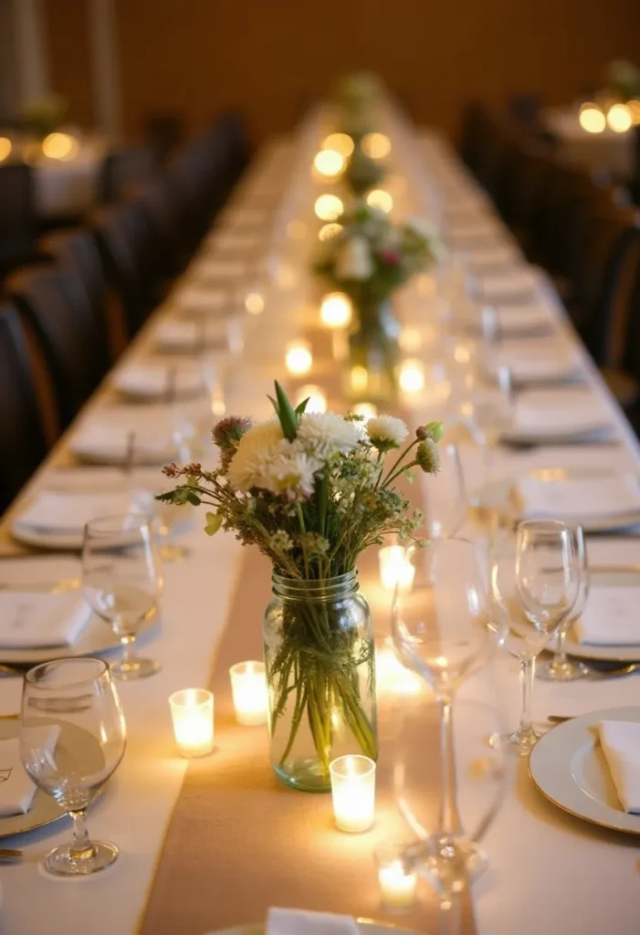 Mason jars are a quintessential element of rustic weddings. They can be transformed into beautiful centerpieces with minimal effort. Fill them with wildflowers, candles, or fairy lights for a charming look. You can also wrap twine or lace around the jars for added texture. The versatility of mason jars allows you to customize them to fit your color scheme and style, making them an affordable yet stylish option for any rustic-themed wedding.
