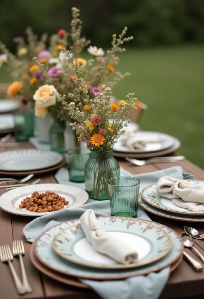 Incorporate vintage tableware into your wedding for a nostalgic and elegant touch. Look for mismatched plates, glassware, and cutlery at thrift stores or flea markets. This unique combination not only adds character to your tablescapes but also tells a story. Pair the vintage tableware with rustic linens and fresh flowers for a cohesive look. Your guests will love the charming, homey vibe that this idea brings to your wedding reception.