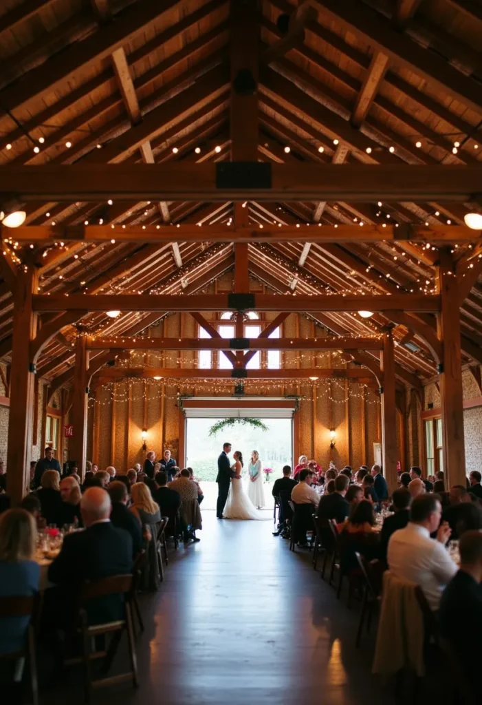 A barn provides the perfect rustic setting for your wedding reception. The natural wood beams, open spaces, and country charm create an inviting atmosphere for guests. Decorate the barn with fairy lights, burlap, and flowers to enhance its beauty. You can also incorporate games and lounge areas for a relaxed vibe. A barn wedding allows for both elegance and fun, making it a memorable experience for everyone involved.