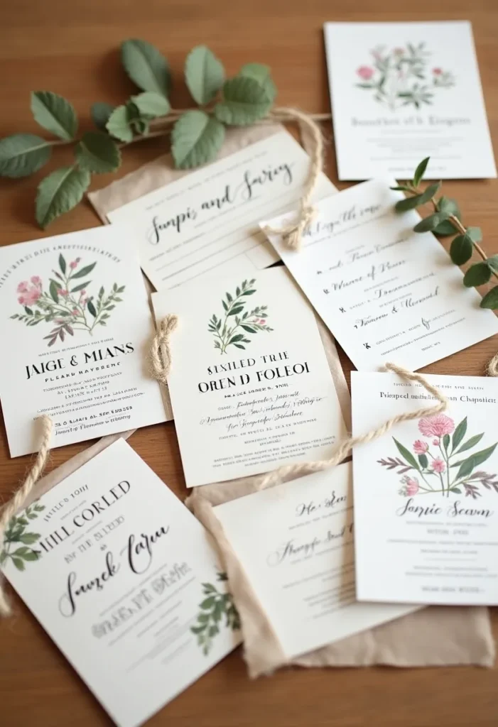 Set the tone for your rustic wedding with nature-inspired invitations. Use earthy tones, botanical illustrations, or textured paper to reflect the outdoor elements of your theme. Consider including details like pressed flowers or twine to enhance the rustic feel. Your invitations are the first glimpse your guests will have of your wedding, so make them count by showcasing your love for nature and the rustic aesthetic right from the start.
