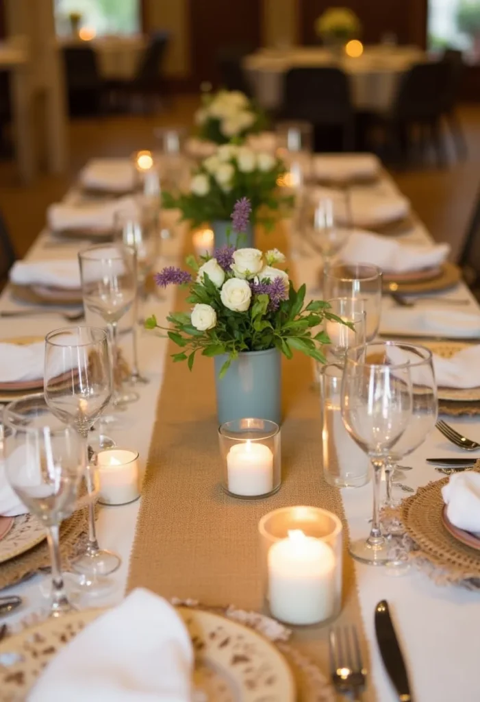 Incorporate lace and burlap into your wedding decor for a soft yet rustic feel. Use burlap runners on tables and lace overlays to create contrast. This combination adds texture and warmth to your decor. You can also use these materials for DIY projects like table numbers, signage, or even bridesmaid bouquets. The natural colors and textures of lace and burlap complement the rustic theme beautifully, making your wedding feel cozy and inviting.