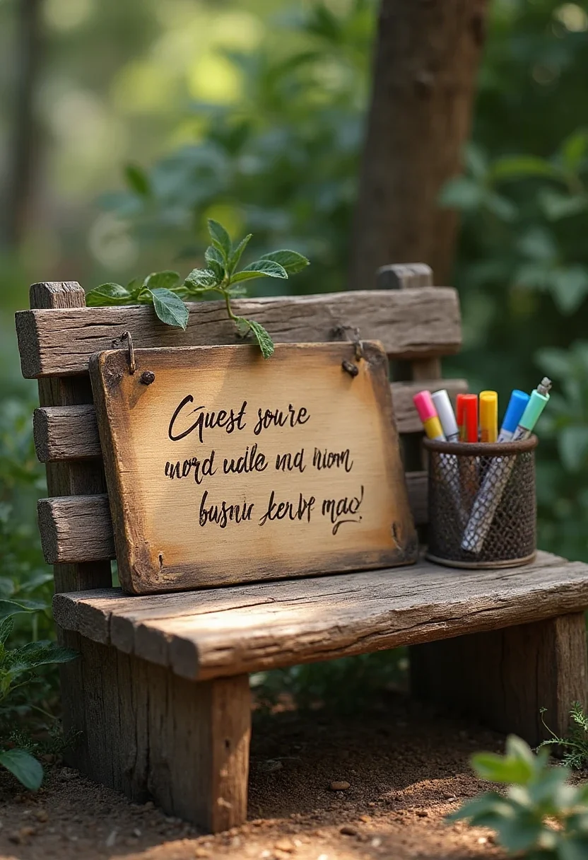 A wooden bench guest book is a charming and functional idea. Have guests sign and leave messages on a wooden bench that you can place in your garden or home. This piece of furniture will serve as a constant reminder of the love and joy shared on your wedding day, becoming a cherished part of your home.