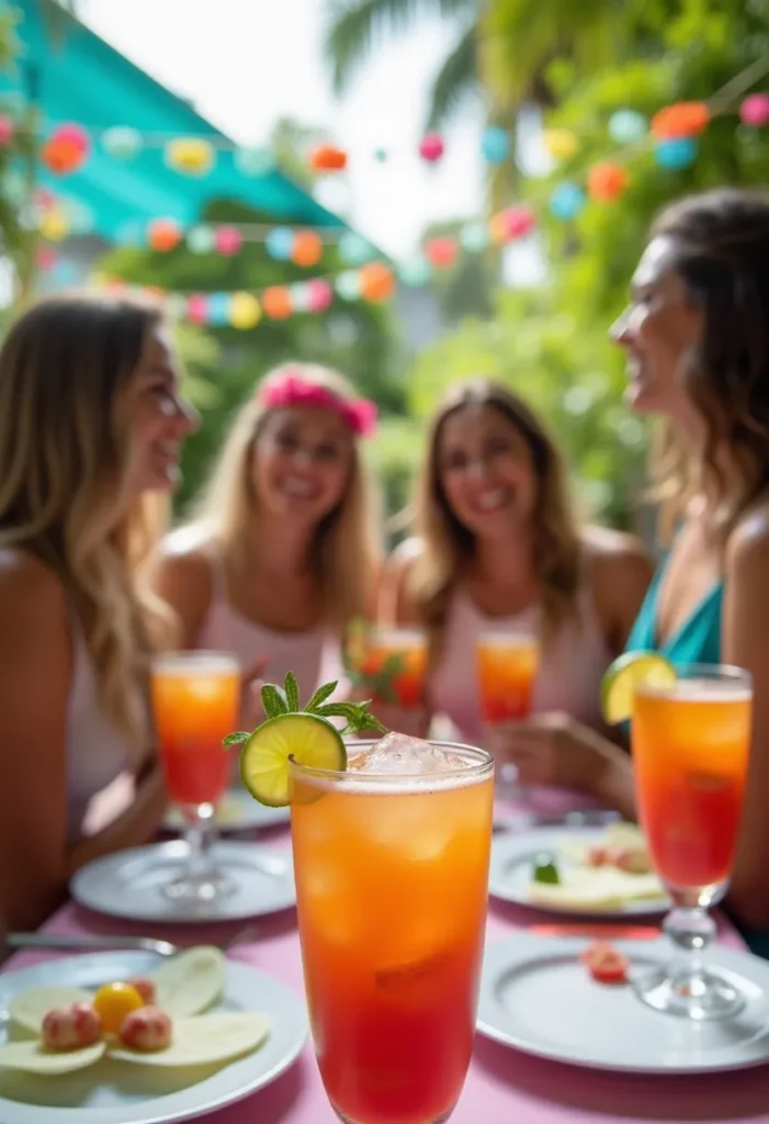 Bring the beach vibes to your bridal shower with a tropical paradise theme! Use bright colors, tropical flowers, and palm leaves for decor. Serve fruity cocktails, tropical dishes, and a vibrant cake that matches the theme. Add fun elements like a limbo contest or hula dancing to keep the energy high. This lively atmosphere will make the bride and her guests feel like they’re on a mini-vacation!