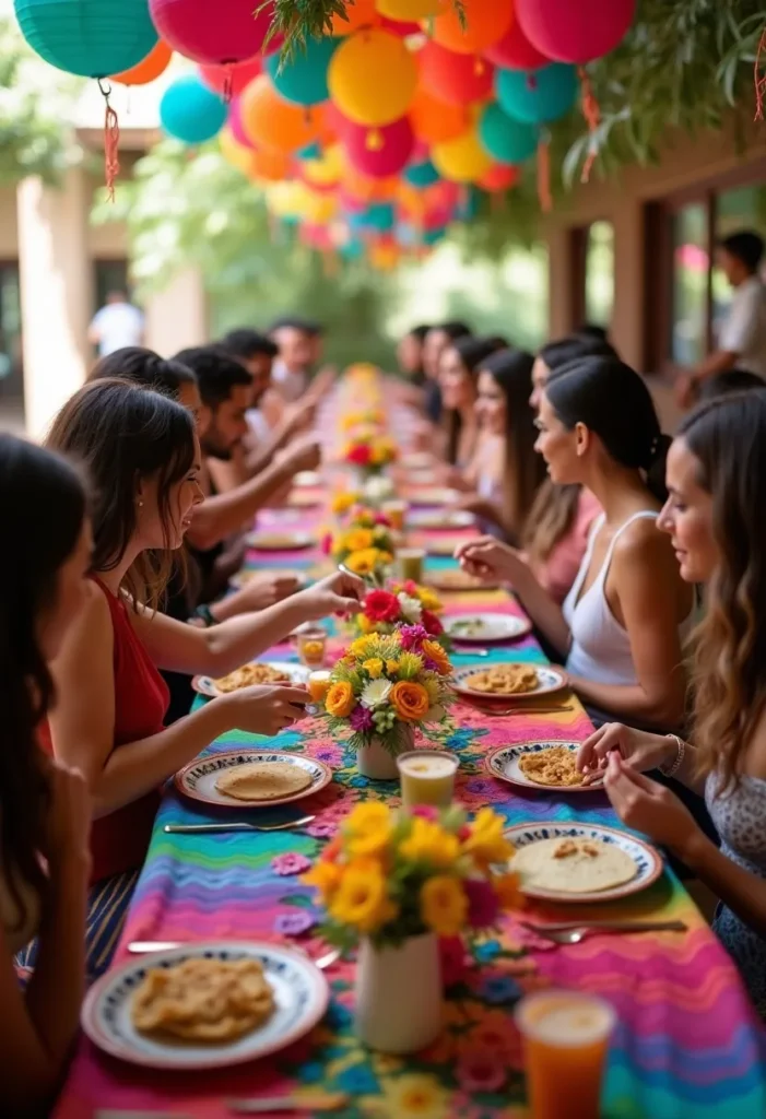 Bring the spirit of celebration to life with a colorful fiesta theme! Use vibrant colors, papel picado, and festive decorations to set the scene. Serve tacos, nachos, and margaritas, and play lively music to create a party atmosphere. Incorporate fun activities like piñata games or salsa dancing to keep the energy high. This theme is perfect for brides who love to celebrate with friends and family!