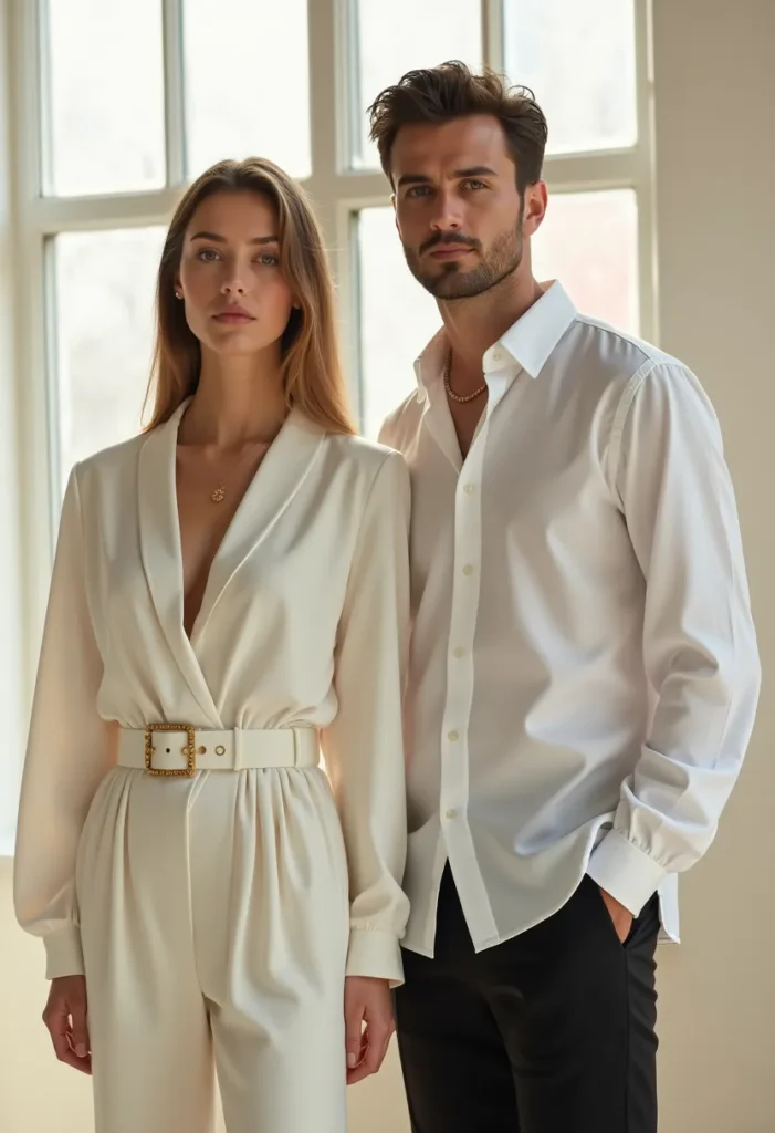 Jumpsuits are a trendy and modern alternative to traditional dresses. Opt for a tailored jumpsuit with a defined waist for her, and a matching suit for him. This combination offers a chic and comfortable option that allows for easy movement on the dance floor. Pair with statement heels and a bold clutch for a striking look that stands out!