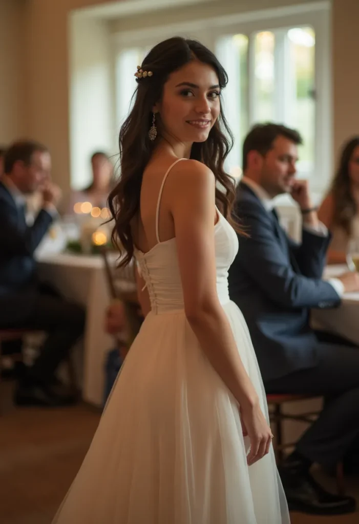 A lace overlay dress combines elegance with a touch of romance. The delicate lace adds texture and sophistication, making it perfect for formal occasions. Choose a design with a fitted silhouette or flowing skirt to suit your style. Accessorize with understated jewelry and a classic clutch for a refined look. This timeless piece will keep you looking stunning while celebrating love.
