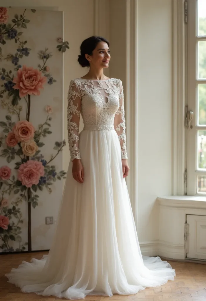 Classic Long Sleeve Gown A classic long sleeve gown is timeless and sophisticated, making it an ideal choice for the mother of the bride. This dress often features delicate details like embroidery or beading, adding a touch of glamour. The long sleeves provide an elegant look while ensuring comfort throughout the day. Choose a gown in a muted or bold color to match the wedding theme. Pair it with understated jewelry and a clutch for a polished appearance that will be remembered.
