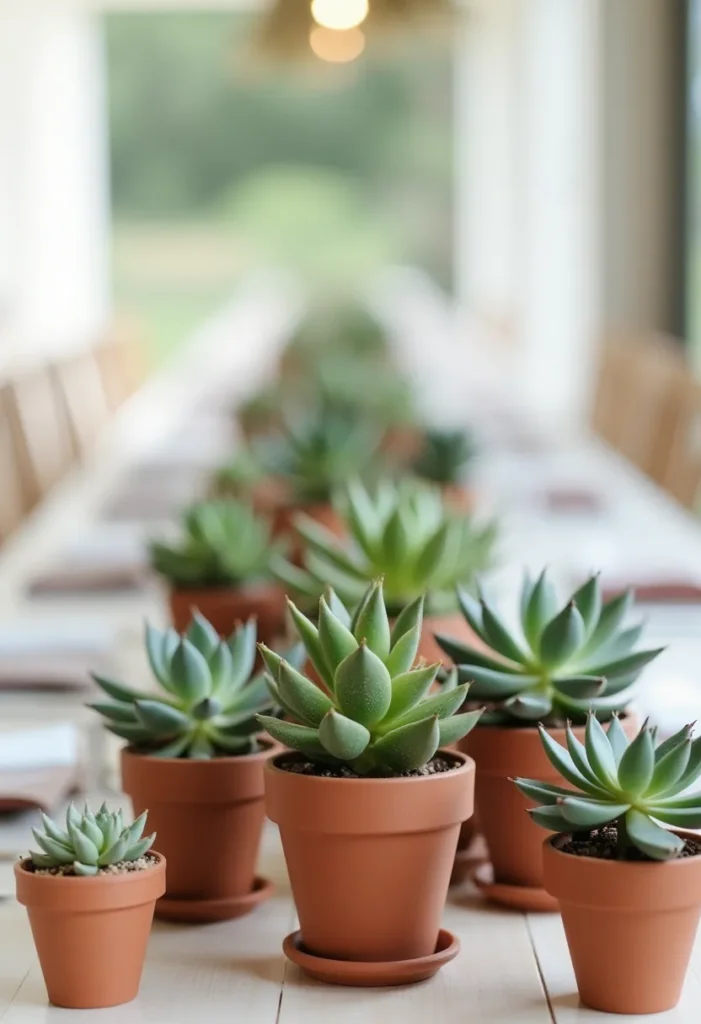 For a modern and low-maintenance centerpiece, consider using succulents. These trendy plants can be arranged in small terracotta pots or elegant glass containers. Combine different shapes and sizes for visual interest, and consider adding decorative stones or sand at the base. Succulents fit perfectly with a minimalist theme and can even double as wedding favors for guests. Their unique textures and colors will add a contemporary touch to your wedding decor.