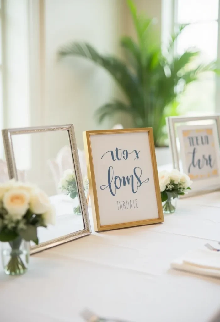 Add a personal touch to your wedding tables with framed pictures of you and your partner. Use decorative frames that match your wedding theme and place them alongside small floral arrangements or candles. This centerpiece will not only enhance your decor but also spark conversations among your guests. It’s a simple yet meaningful way to celebrate your love story while creating a warm atmosphere at your reception.