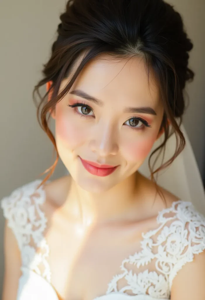 Create a romantic look with rose tones that warm up your features beautifully. Use soft rose-colored shadows on the eyes and pair them with a matching blush. A soft rose lipstick will complete the look, making it perfect for a romantic or vintage-themed wedding. This makeup style is all about soft hues that complement your natural beauty, ensuring you look effortlessly radiant on your special day.