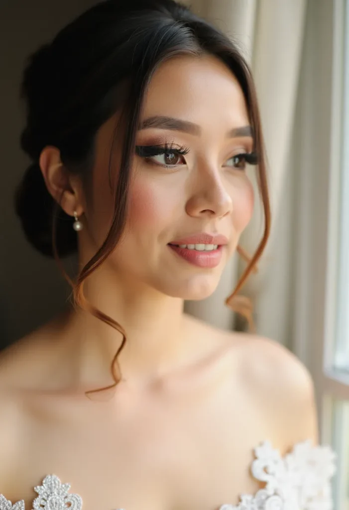 For brides who love simplicity, the minimalist chic look is ideal. Focus on flawless skin with a tinted moisturizer, a touch of blush, and a hint of lip balm. Keep the eye makeup very light, using only mascara to define your lashes. This look highlights your natural beauty and is perfect for modern weddings. It’s stylish yet uncomplicated, allowing you to feel like yourself while looking your best.