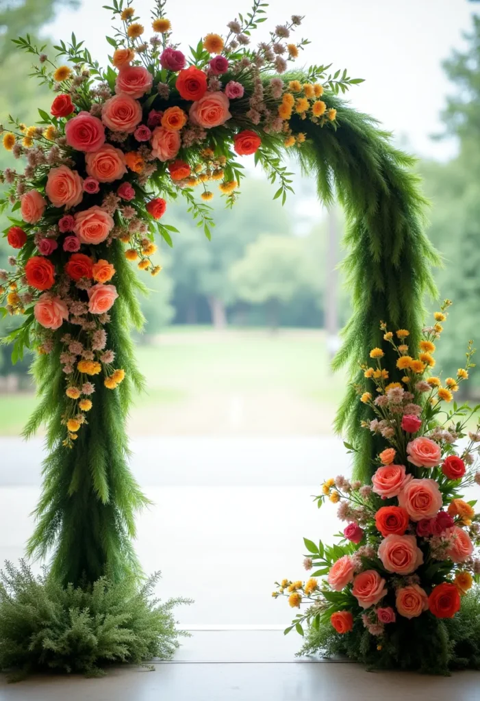 A floral archway creates a breathtaking entrance that can be customized with your favorite blooms. Choose flowers that match your color palette and consider adding greenery for a lush, vibrant look. This stunning focal point not only frames the entrance beautifully but also provides a perfect backdrop for photos. Use a combination of cascading flowers and structured branches to create depth and visual interest. Enhance the ambiance with soft lighting to make the archway glow as the sun sets, creating a romantic atmosphere as guests arrive.