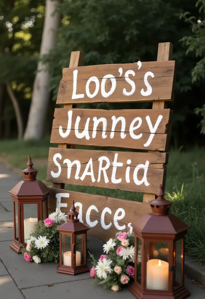 Embrace a rustic charm with wooden signage that welcomes guests to your wedding. Hand-painted signs can direct guests to different areas of your venue or display romantic quotes. Use reclaimed wood for an authentic, vintage feel, and consider adding decorative elements like lanterns or floral accents to enhance the look. This personal touch not only guides your guests but also adds character to your entryway. Choose a font that reflects your wedding style, whether it's elegant script or playful lettering, to tie everything together beautifully.