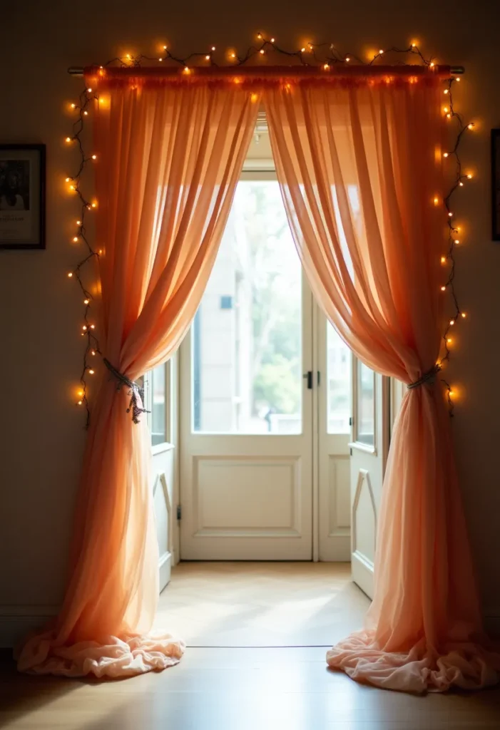 Transform your wedding entrance with luxurious fabric draping that adds elegance and depth. Opt for flowing fabrics like chiffon or satin in your wedding colors, cascading from the ceiling or framing the doorway. This simple yet impactful decor choice can create a stunning visual effect, especially when paired with uplighting. Consider adding embellishments such as fairy lights or floral accents to enhance the romantic atmosphere. Draping is versatile and works beautifully in both indoor and outdoor settings, making it an excellent choice for any venue.