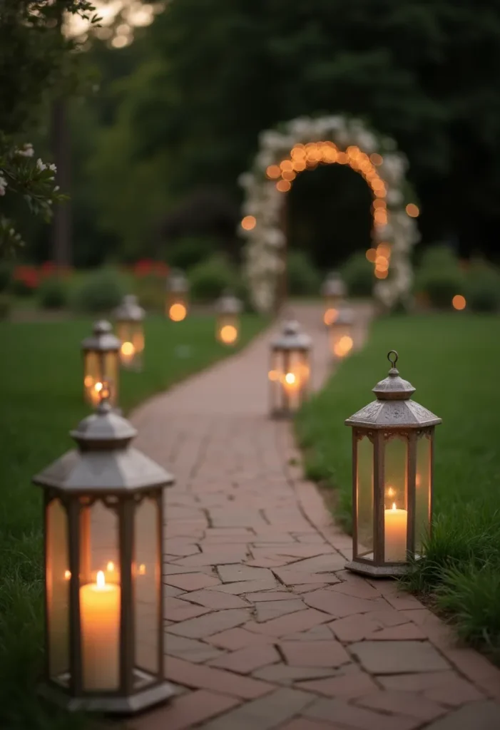 Add a touch of charm and warmth to your wedding entrance with decorative lanterns. These versatile pieces can be placed along the pathway or hung from trees to create a cozy atmosphere. Choose lanterns in various sizes and styles, from rustic to modern, to match your wedding theme. Fill them with candles, fairy lights, or greenery for an enchanting glow as the sun sets. Lanterns not only illuminate the entrance but also serve as beautiful decor elements that enhance the overall ambiance of your celebration.