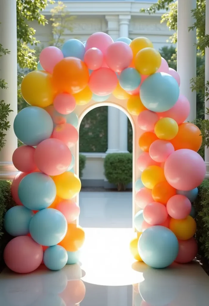 Bring a playful element to your wedding entrance with whimsical balloons. Choose balloons in your wedding colors and mix sizes for a dynamic look. Create clusters at the entryway or use them to highlight specific features of the venue. Balloons can be styled in various ways, from elegant balloon arches to simple bouquets. This fun decor choice adds a lighthearted touch and can easily be customized to fit any theme, making it a perfect addition for a joyful celebration.