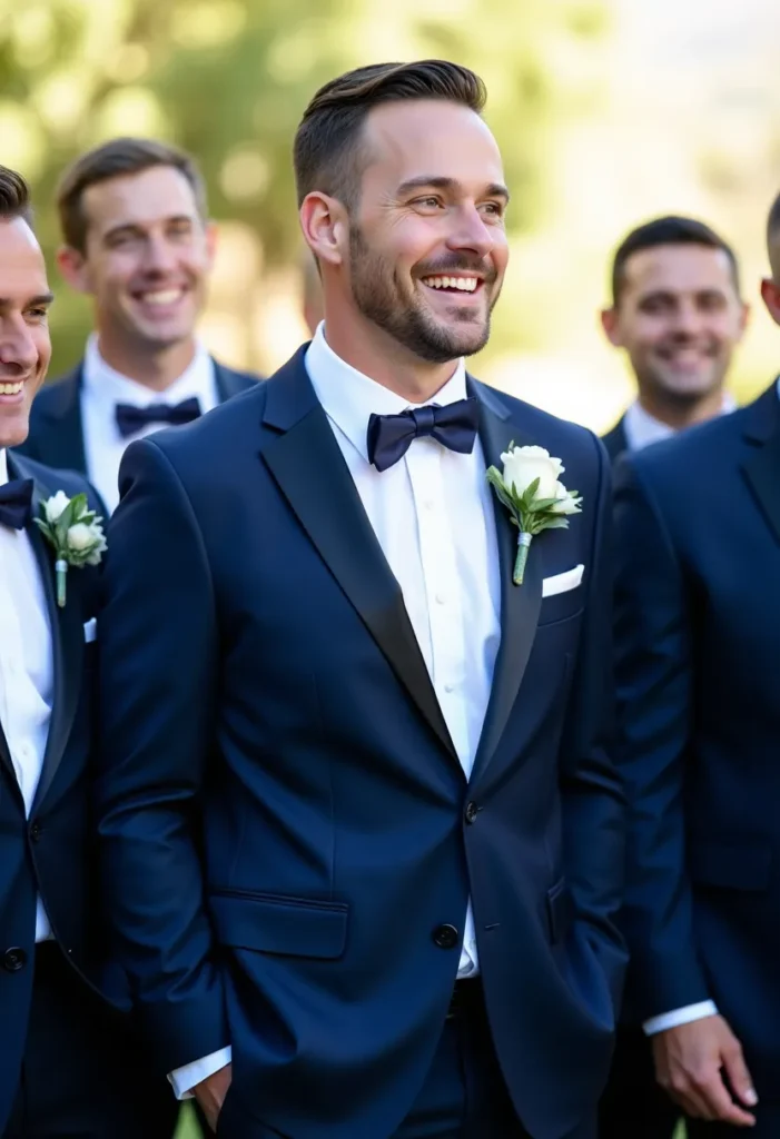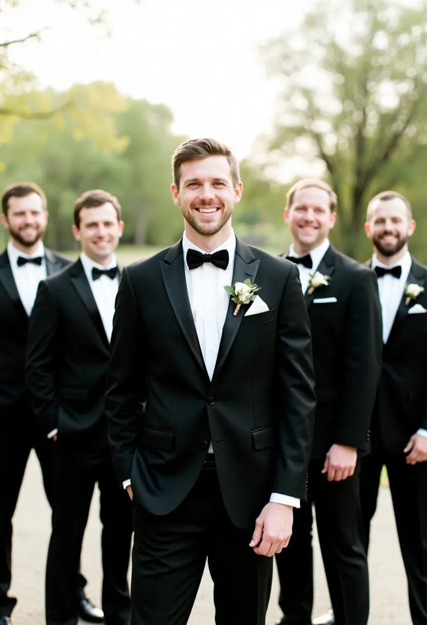 The timeless black tuxedo is a staple for any formal wedding. Its sleek design, paired with a crisp white shirt and a bow tie, exudes elegance and sophistication. Consider adding a pocket square for a pop of color or unique texture. The classic tuxedo works beautifully in traditional settings and can be paired with a variety of wedding themes, from vintage to modern. Accessorizing with polished leather shoes and cufflinks can elevate the look even further, creating a polished appearance that will have all eyes on the groom and his party.