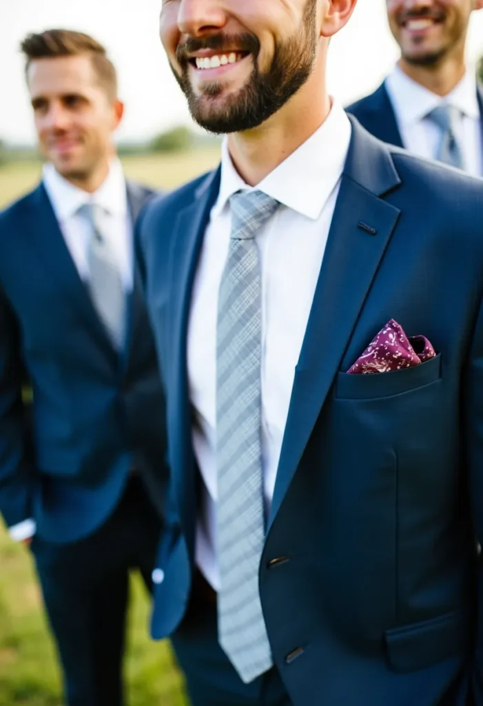 A navy suit is a versatile and stylish alternative to traditional black attire. This color works for both daytime and evening weddings, making it a top choice for many grooms. Pair it with a light-colored shirt and a patterned tie for a modern twist. The navy suit can be dressed up with accessories such as a stylish watch or unique lapel pin, or kept simple for a more relaxed vibe. This timeless choice is sure to please and works beautifully in various wedding themes, from beachside to ballroom.