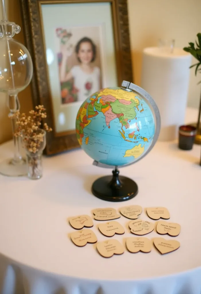 Ditch the traditional guest book and opt for something creative! Consider having guests sign a globe, contribute to a scrapbook with photos and notes, or even leave messages on wooden hearts. These unique alternatives will not only capture well-wishes but also serve as cherished keepsakes that you can display in your home.